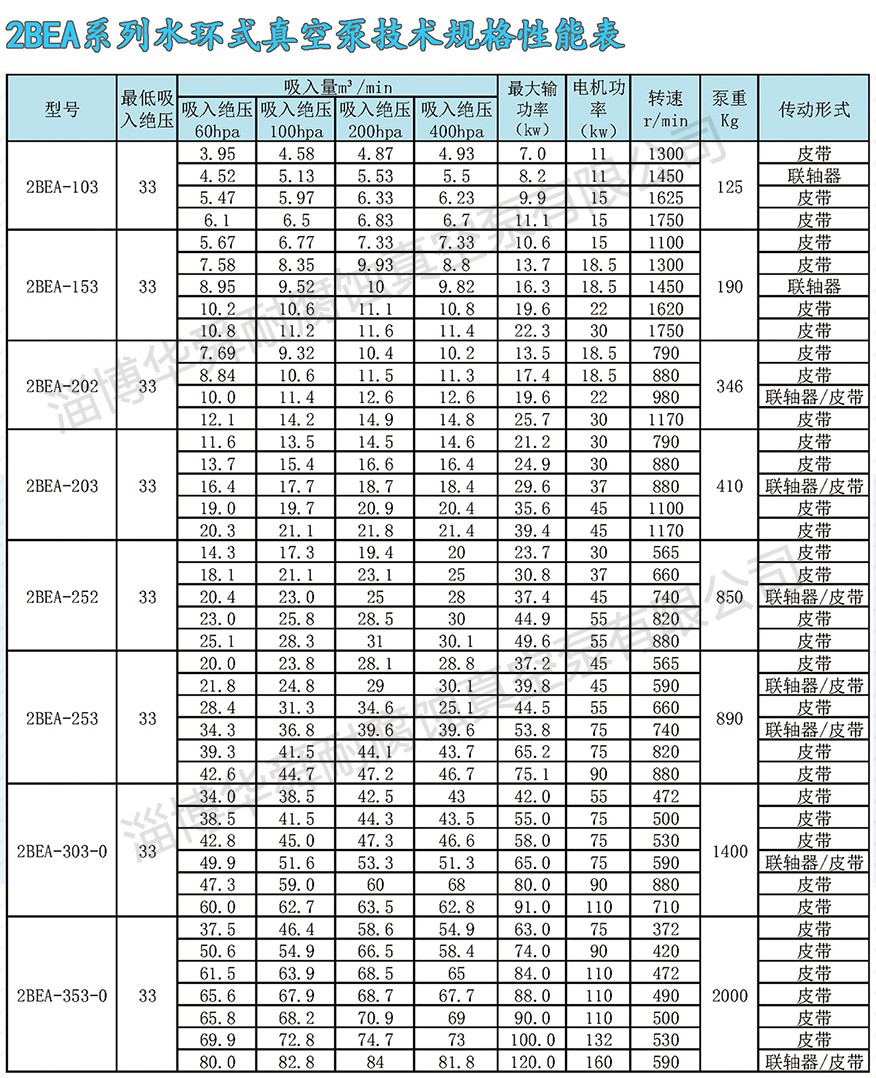 2BE系列水環(huán)真空系及壓縮機(jī),是我公司在多年科研成果和生產(chǎn)經(jīng)驗(yàn)的基礎(chǔ)上,結(jié)合國際同類產(chǎn)品先進(jìn)技術(shù),研制開發(fā)的高效節(jié)能產(chǎn)品,通常用于抽吸不含固體顆粒,不溶于水,無腐蝕性的氣體,以便在密閉容器中形成真空和壓力。通過改變結(jié)構(gòu)材料,亦可用于抽吸腐蝕氣體或腐蝕性液體做工作液。廣泛用于造紙、化工、石化、輕工、制藥、食品、冶金、建材、電韻、煤暖、金屬礦山、化等行業(yè)。本系列泵采用單級(jí)單作用的結(jié)構(gòu)形式,具有結(jié)構(gòu)簡(jiǎn)單,維修方便,運(yùn)行可,高效節(jié)能的優(yōu)點(diǎn),并能適應(yīng)排水量大,載荷沖擊波動(dòng)等惡劣工況。我們對(duì)關(guān)鍵部件,如分配板,葉輪和系軸進(jìn)行了系列優(yōu)化設(shè)計(jì),簡(jiǎn)化了結(jié)構(gòu),提高了性能,實(shí)現(xiàn)節(jié)能。采用球墨鑄鐵或焊接葉輪,葉片一次沖壓成形,型線合理:輪轂全部加工,從根本上解決了動(dòng)平衡問題。葉輪與系軸采用熱裝過盈配合,性能可靠,運(yùn)行平穩(wěn)。葉輪焊接后,整體進(jìn)行熱處理,使葉片具有良好的韌性,葉片的抗沖擊,抗折彎能力得以根本保證,能適應(yīng)載荷沖擊波動(dòng)等惡劣工況。2BE系列泵,自帶氣水分離器,多位置設(shè)有排氣口,泵設(shè)有排氣檢修口,葉輪與分配板間通過定位軸承兩娉壓益調(diào)整,安裝使用方便,操作簡(jiǎn)單,便于維修。